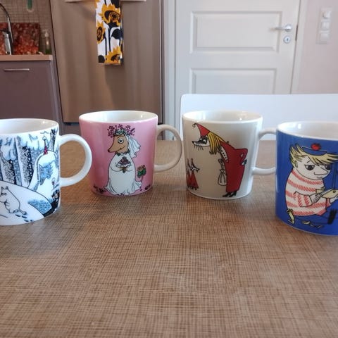 Muumimukeja. Kaikki moitteettomassa kunnossa. Vitriinissa säilytetty, ei käytetty. Ilman tarroja.