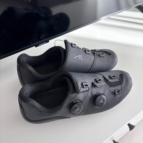 Mavic maantiepyöräilykengät, koko 43 1/3. Väri musta. Kengissä on tarrakiinnitys usealla remmillä ja jäykkä pohja, joka on suunniteltu maantiepolkimille, 3-pulttiselle klossijärjestelmälle. Sopivat maantiepyöräilyyn ja harjoitteluun maantiepolkimien kanssa. Mukaan Lookin klossit.