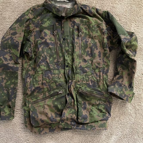 Särmä TST maastohousut koossa X-Large Regular. Housuissa on vihreäsävyinen maastokuvio. Materiaalikoostumus ei näy tarkasti kuvasta, mutta housut on tarkoitettu ulko- ja maastokäyttöön. Mallissa on useita taskuja ja kiristysmahdollisuuksia lahkeissa. Soveltuu esimerkiksi retkeilyyn ja muuhun ulkoiluun.