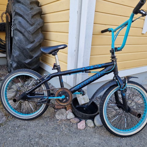 Tästä hieman korjausta vaativa BMX pyörä, tästä saa hienon pyörän pienillä korjauksilla. Takajarru ei toimi jostain syystä, kumit pitäisi vaihtaa / pumpata ja muutenkin hieman ruosteessa tietyistä paikoista.