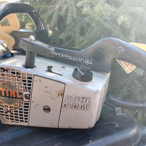 Stihl 010 AV moottorisaha. Bensiinikäyttöinen ketjusaha, jossa etukahva ja takakahva sekä ketjusuoja. Sopii puiden kaatoon, karsintaan ja polttopuiden katkaisuun. Mallissa on tärinänvaimennus (AV) käytön helpottamiseksi. Terälaipan pituus ja moottorin tarkka tilavuus eivät käy ilmi kuvista. Lähetys tai nouto.
