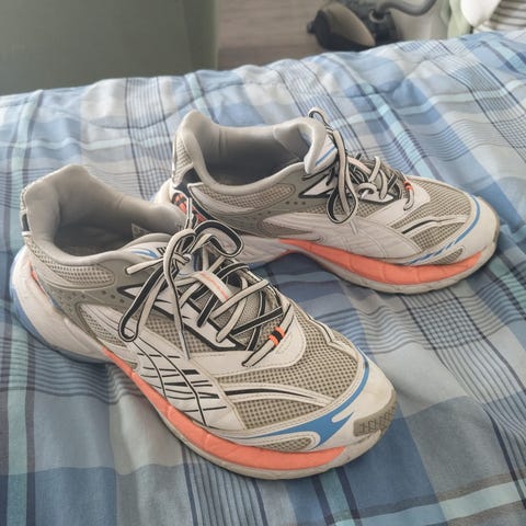Puma First Mile urheilukengät, koko 44. Väritys beige päällinen ja vihreät yksityiskohdat. Päällinen tekstiiliä ja synteettistä materiaalia, nauhakiinnitys. Välipohjassa vaimennus juoksua varten ja ulkopohjassa kumipinta, jossa kuviollinen pitoalue. Soveltuu juoksuun ja muuhun liikuntaan.