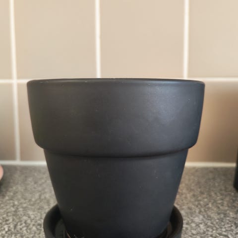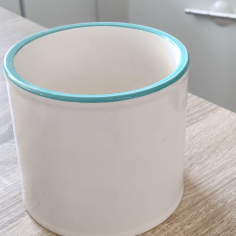 Korkeutta noin 13 cm. Halkaisija yläreunasta mitattuna noin 18 cm. Pohjasta mitattuna halkaisija noin 16 cm.
