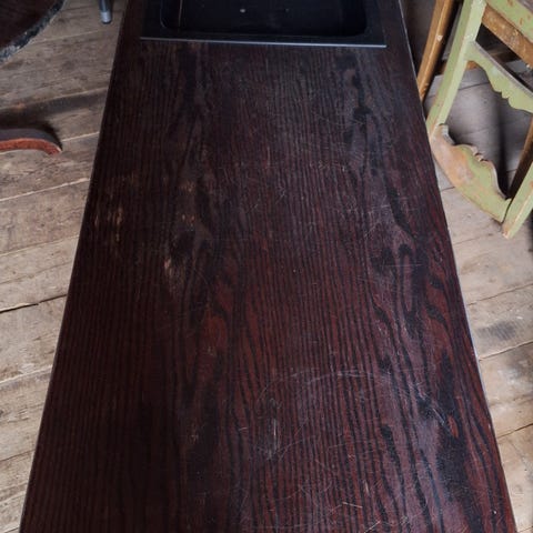 Pöytä/kukkapöytä.Akaasiapuuta. Korkeus 77 cm ja syvyys ja leveys 30 cm. Tarvittaessa kulkeutuu Ouluun.