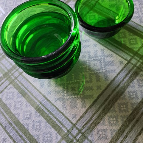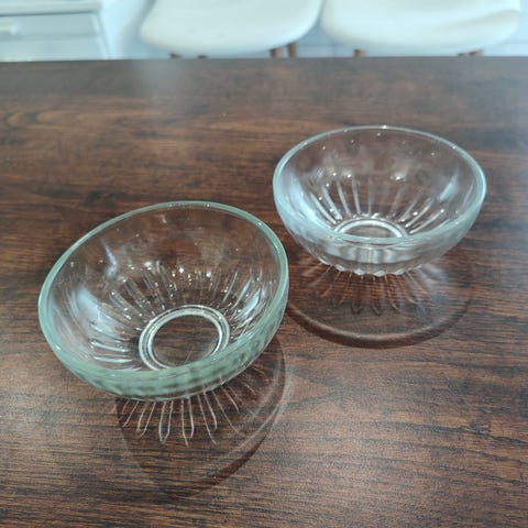 Käyttämättömät maitolasiset tarjoilukulhot, kaksi omenanmallista, yksi kolmion mallinen. Koko 19x20cm, kork.7cm/omenamallinen ja kolmio halk.21cm, kork.7cm.