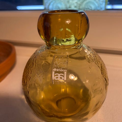 Pieni (9,8 cm) Tellus-pullo. Kirkas. Ehjä.