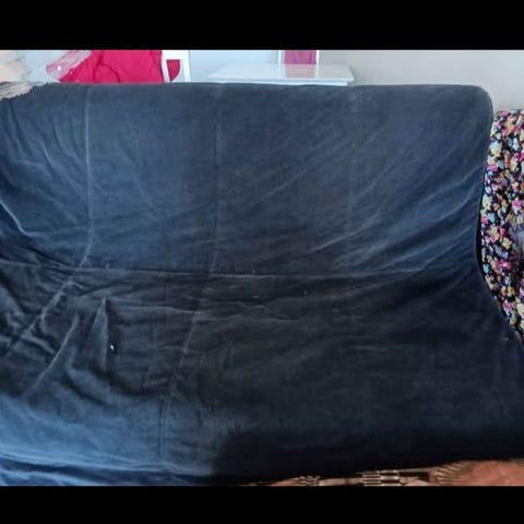Vuodesohvan mekanismi toimii hyvin. Verhoilu on valkeaa nahkaa, joka on kulunut ja täytyy uusia.
