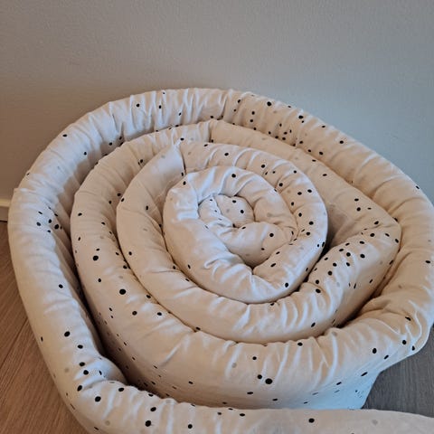Ihana reunapehmuste pinnasänkyyn. Kaunis vaalea sävy jossa hempeitä kukkasia. 🌺 ollut käytössä yhdellä lapsella. Ovh 95€