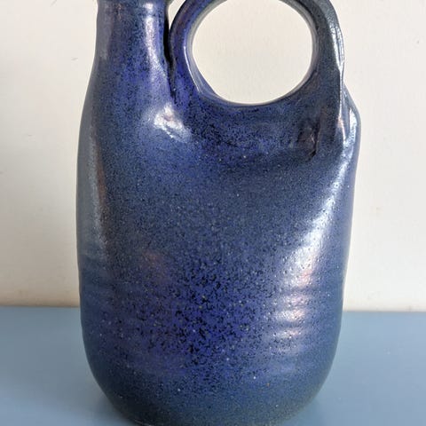 Perinteinen ruotsalainen Höganäs-keramiikkakannu, joka on valmistettu ruskeasta kivitavarasta ja tunnettu kestävästä rakenteestaan.