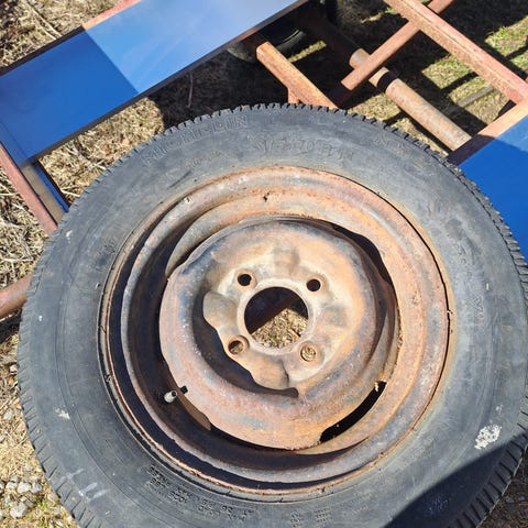 Ikivanhaan autoon vanne. Kuvasta näet mikä...