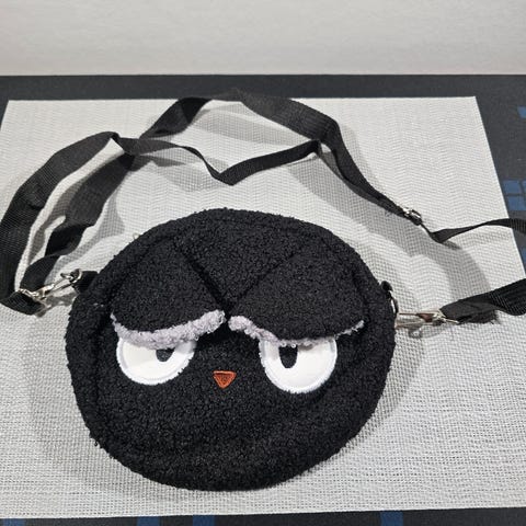 Carpisa kangaslaukku. Materiaalina paksu puuvilla, jossa edessä painettu teksti ja kuvitus. Laukussa on keinonahkaiset kantohihnat. Yläreunassa neppari.