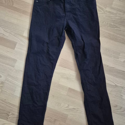 Jack & Jones chino-housut miehille. Koko 34/30.. Väri sininen. Materiaali puuvilla. Housuissa on etu- ja takataskut sekä vyölenkit. Sopivat arki- ja vapaa-ajan käyttöön. Vain kerran käytetyt ja pestyt.
