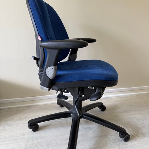Martelan työtuoli, mallia ei tekoäly osannut kertoa. Ostin toimistomyynnistä muutama kk sitten. Käsinojan sisäreunasta toisen sisäreunaan on 50cm, joka on itselleni pienenä ihmisenä liian leveä, eikä leveyttä saa säädettyä. Selkänojan sisimmästä kohdasta istuimen reunaan on 44cm, selkänojaa ei saa lähemmäksi tai kauemmaksi. Muut perässäädöt löytyy ja toimivat hyvin. Käytön jäljet näkyvät kuvissa.