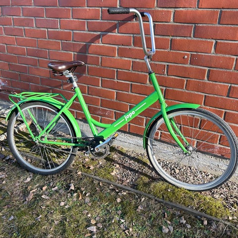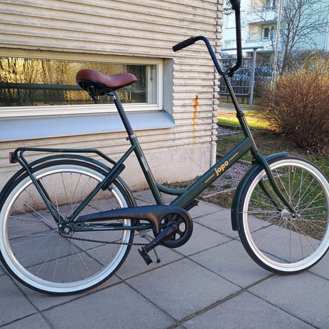 Tarpeettomana autotallissa vuoden seissyt 3 vaihteinen Helkama Jopo. Ostettu käytetynä ja sen jälkeen käynyt n. 200€:n huollossa. Vaihdettu takapää kokonaan.