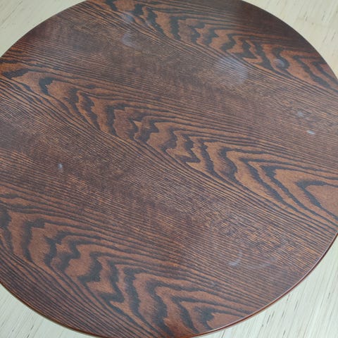 Pyöreä sohvapöytä. Ehkä joku joskus itse maalannut valkoiseksi, maali halkeillut parista paikasta vaan eipä tuo käyttöä haittaa ja on korjattavissa.