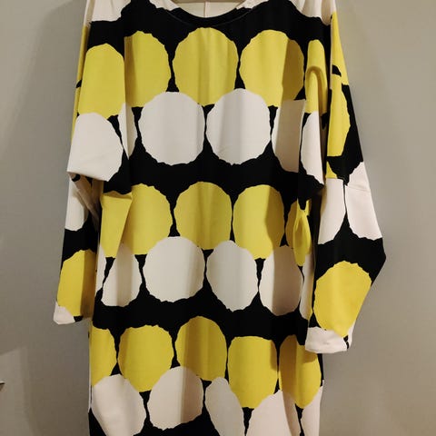 Mitat: kai-kai 46 cm, etupituus olalta helmaan 96 cm.