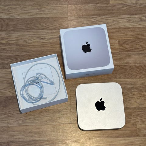 Kuvan Mac mini tarpeettomana. Hyvin pelaa arjen asioiden hoitamiseen. Kuvista näkee hyvin mitä liittimiä löytyy. Keskusmuistia 8Gt, kovalevy 250Gt ja helppo lisätä vaikka kuinka. Käyttis Sequoia 15.6.1. sijainti seinäjoki, kaupat mieluiten kasvotusten. Mukaan virtajohto.