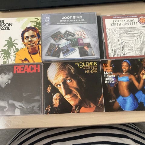 Kokoelma sekalaisia cd-levyjä, joissa hiphop- ja jazz-musiikkia. Kuvassa näkyy useita eri artisteja ja albumeja, muun muassa hiphop- ja jazz-tyylilajeista. J Dilla, Roots etc.