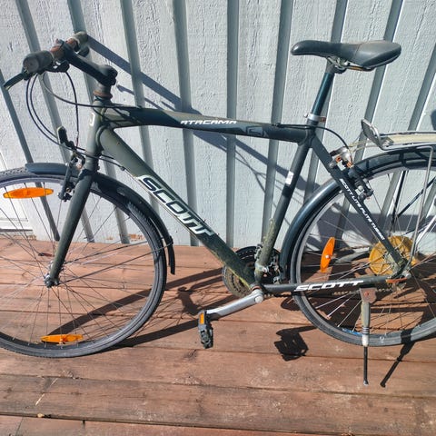 18 vaihteinen, toimiva pyörä. Vähän ajettu. Eturengas vaatii paikkauksen. 175 cm kaveri ajellut.