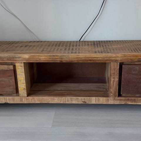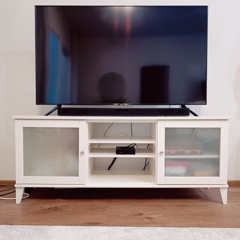 Myydään siisti ja tukeva puinen Sara TV-taso. Tasossa kaksi lasiovea sekä kaksi vetolaatikkoa, joten säilytystilaa löytyy hyvin esimerkiksi elektroniikalle ja tarvikkeille.