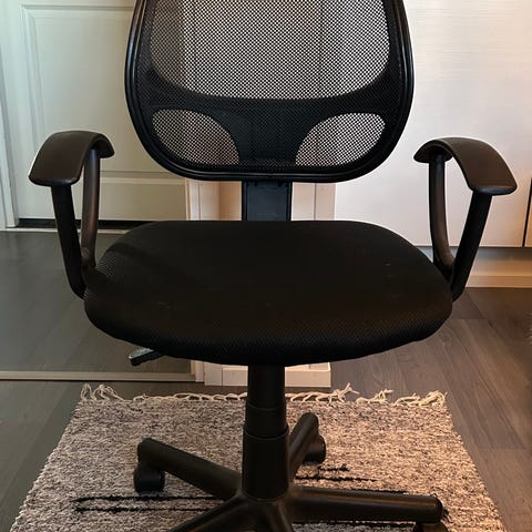 Toimiva tuoli rullilla, pyörivä, kaartuva selkänoja, säädettävät käsinojat, toimii myös tiukemmat saa pelitilanteissa. Selkänoja hengittävää materiaalia. Käteväkin kuulemma. Pyörivä keinuva rullaava ja säädettävä malli. Istuinosan mitat 50x50cm selkänojan korkeus 70cm. 120cm koko tuolinkorkeus