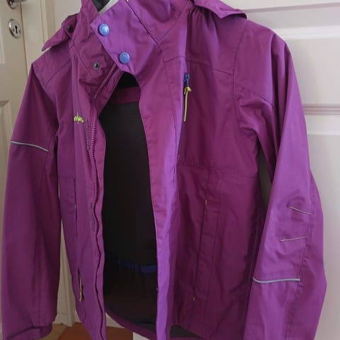 Kevyt vedenpitävä poikien takki, irrotettavalla hupulla, koko 152. Verkkovuori.