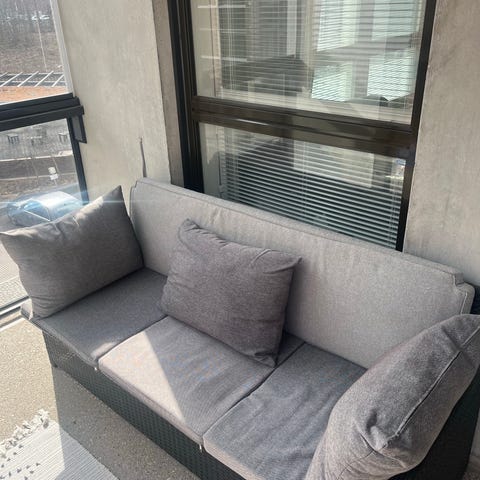 Metallinen musta ulkosohva terassille tai parvekkeelle. Hyvässä kunnossa. Vain nouto Äänekoskelta.