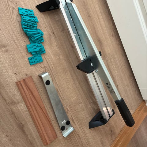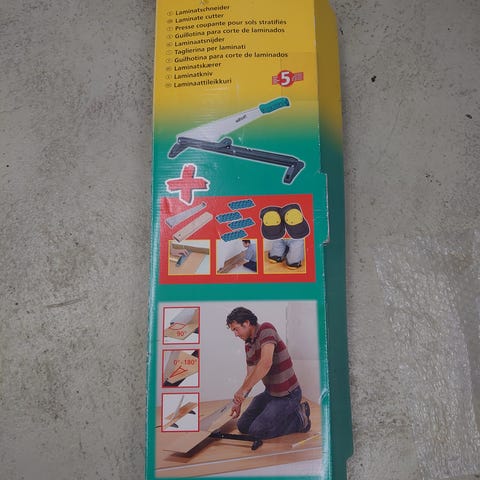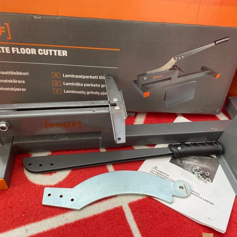 Yhdessä remontissa käytössä ollut Wolfcraft laminaattileikkuri VL800. Käy myös vinyylin leikkaamiseen. Maksimi leikkauspaksuus on 11 mm.