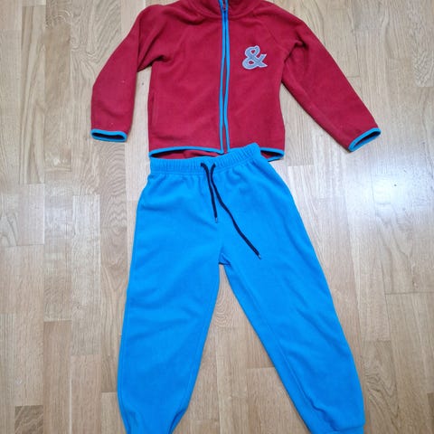 Myydään kuvan fleecetakki sinisellä liskokuviolla ja takkiin sopivat siniset housut. Yhteishinta.