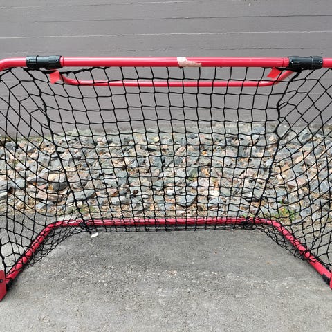 Pieni ehjä sählymaali pihan peleihin sekä mailaa.