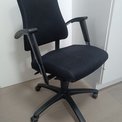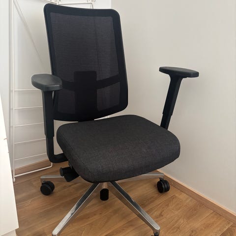 Tuolissa on korkeuden säätö ja kallistus, ja käsinojiakin saa säädettyä sopivaksi. Selkänoja tukee hyvin ja kokonaisuutena mukava istua pidempiäkin aikoja. Rullaa kevyesti eikä pidä kovaa ääntä.