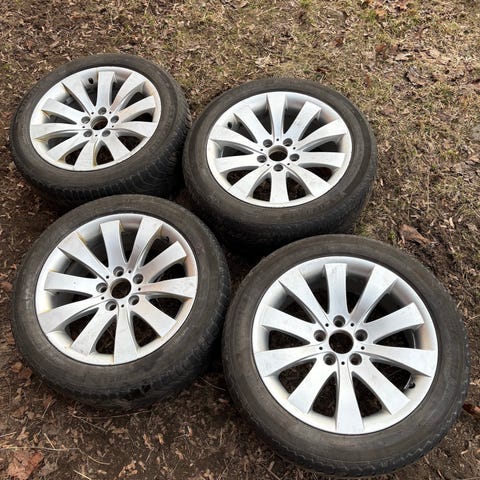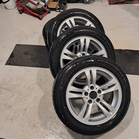 Siitä hyvä kuntoiset ja siistit vanteet seuraavalle omistajalle. Renkaat kuluneet tasaisesti ja kumeilla ajaa hyvin vielä kesän. Pintaa noin 2.5-3mm