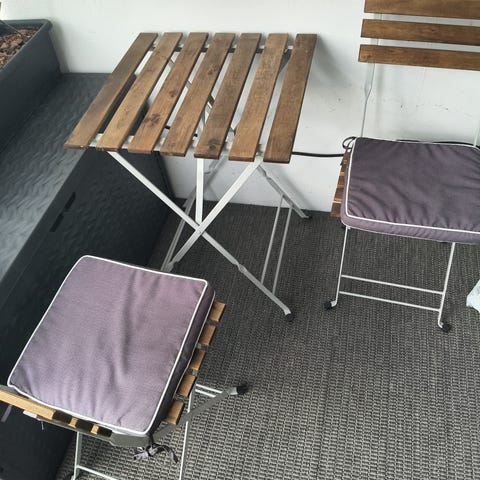 Myydään tukeva Maskun puutarhasetti taittotuoleilla. Pöytälevyn koko 90x90cm