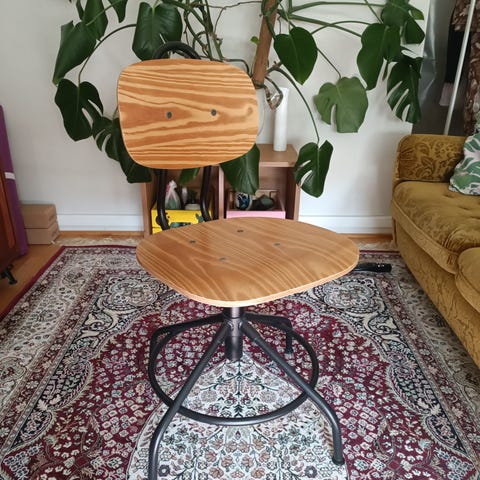 Hyvä käytetty kunto, tarpeettomaksi jäänyt Ikean toimistotuoli marjapuuron sävyssä. OVH 179€.