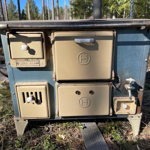 Myydään kuvissa olevat puuhellan osat. Pienellä vaivalla saa puhdistettua ja maalattua kuumuutta kestävällä maalilla.