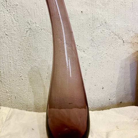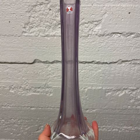 Maljakko, violettia lasia. Kapea ja korkea malli, neliskulmainen pohja ja pyöreä suuaukko. Sopii esimerkiksi yksittäisille kukille tai pienille kimppuille. Valmistettu läpinäkyvästä värilasista, helppo sijoittaa erilaisiin sisustuksiin.