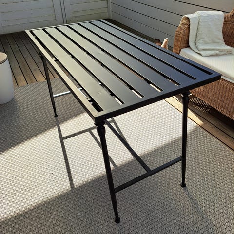 2 vuotta vanha pöytä , ollu lasitetussa terassilla