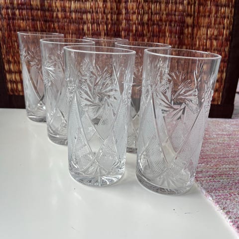 Erittäin hyväkuntoiset jalalliset kristallilasit, 6kpl. Tilavuus noin 30ml.