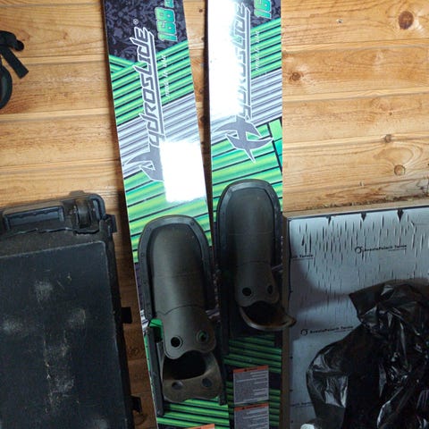 Myydään mäkihyppysukset ja "evä", jotka olleet jääsurffauskelkassa. Evän pituus 111 cm.