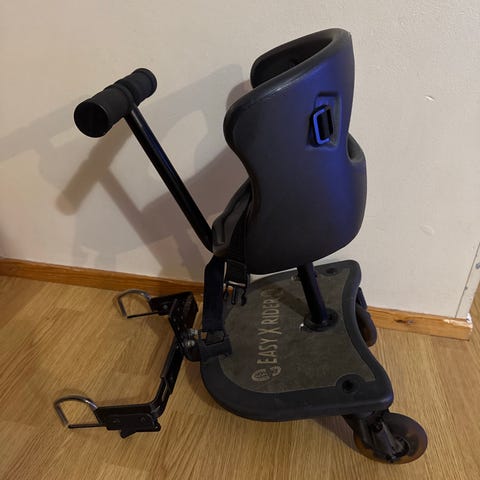 Brio seisomalauta vaunuihin. Muovinen seisomalauta kiinnitetään vaunujen runkoon koukkukiinnikkeillä. Sopii esimerkiksi Brion Happy vaunuihin.