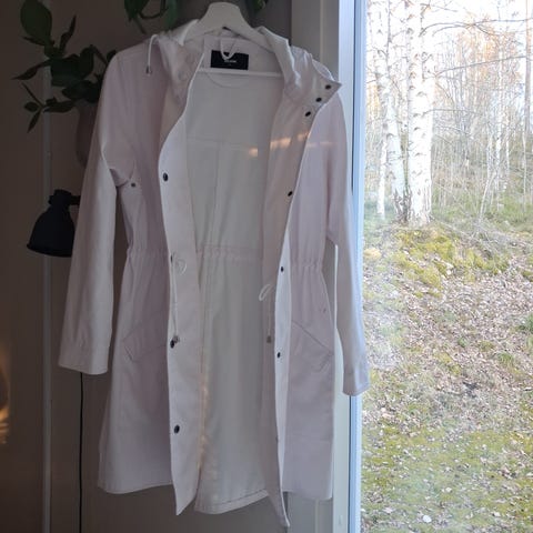 Lager 157 naisten sadetakki, koko M. Myydään siistissä kunnossa oleva sadetakki, menee S-kokoiselle tai pieni M. Beigen värinen. Itsellä yli pohkeen pituus (167cm oma pituus). Hieman käytön jälkiä pinnassa, en koittanut poistaa (ks. kuva saumasta). Yleisilme erittäin siisti ja takki on ehjä ja pitää vettä.