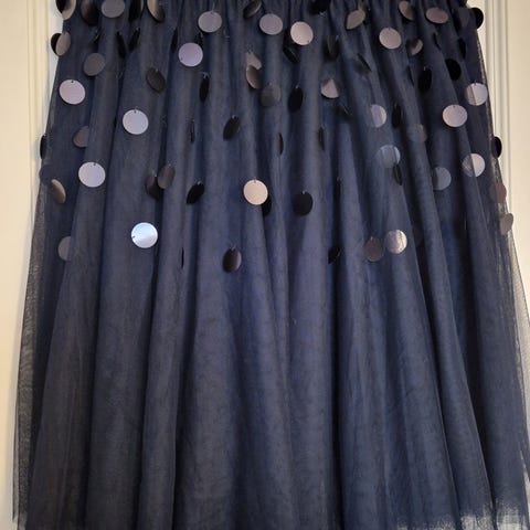 Kaunis Kriss -puolihame, muuten hyvässä kunnossa, mutta vyötärö löystynyt käytössä. Huomioitu hinnassa
