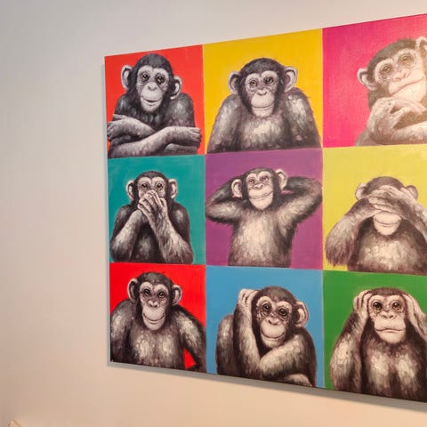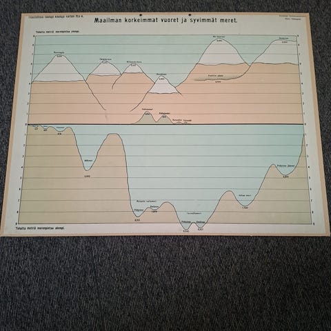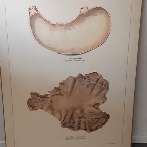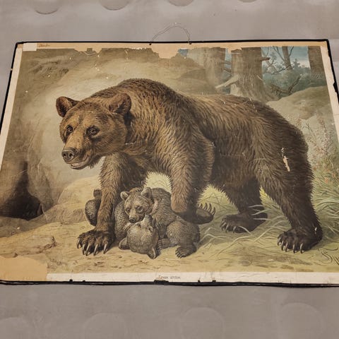 Vanha hyeena-aiheinen opetustaulu, koko 84 x 62cm, kuvan mukainen kunto.