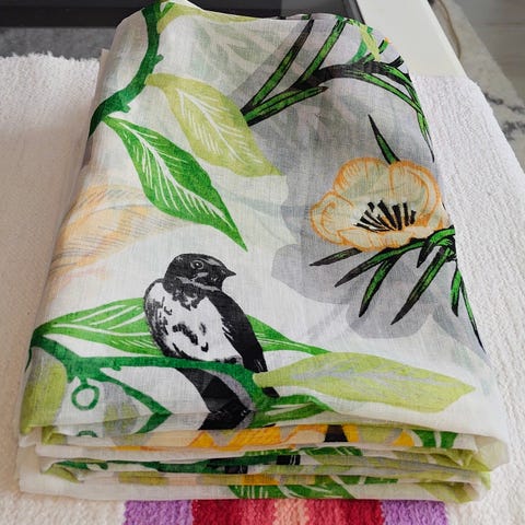 Myydään tarpeettomana Saara Kurkelan Vallilalle suunnittelemat kesäisen kevyet Kutikula- valoverhot 2kpl.