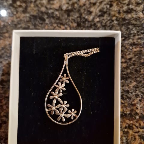 Hopeinen kaulakoru jossa nätti riipus helmiäiskivillä ja timanteilla🩷