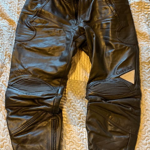 Myydään erittäin hyväkuntoiset Dainese nahkahousut, joissa valmiina polvisuojat. Laadukas ja kestävä valinta ajamiseen 🏍️