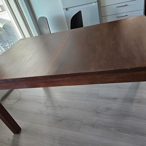 Pöytä on tällä hetkellä purettuna (jalat irrotettu)