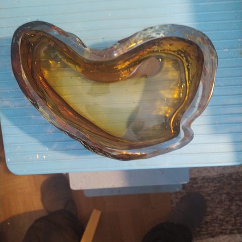 Myydään Kumela meripihkan värinen maljakko. Pohjassa signeeraus.