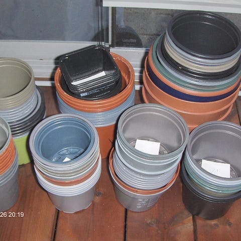 Kuvanmukaiset roikkuvat, muoviset kukka-amppelit. Amppeliruukkujen koko: yläreunan halkaisija 26 cm, alareunan halkaisija 17 cm ja kokonaiskorkeus 23,5 cm ja sisäisen yläosan korkeus noin 15 cm. Hinta yhteensä 3 euroa. Mielellään nouto. Kalliiden lähetyskulujen takia lähettäminen ei kannata, mutta tarvittaessa onnistuu lähetyskin.
