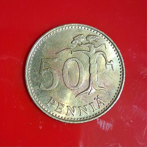 Suomen tasavallan 5 penniä kolikko vuodelta 1977. Kolikon toisella puolella on nimellisarvo 5 PENNIÄ ja toisella puolella teksti "Suomen tasavalta" sekä vuosiluku 1977. Sopii esimerkiksi kokoelmiin tai numismatiikasta kiinnostuneelle.